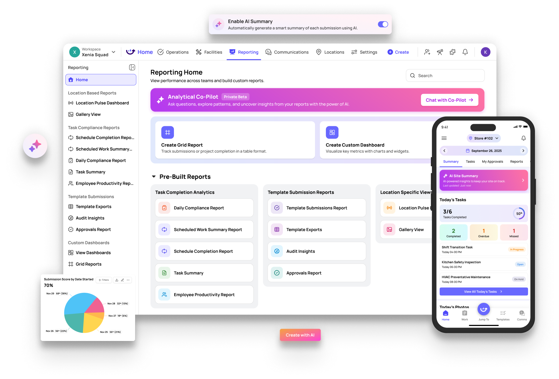 Ask questions in plain language and get instant answers about performance trends, compliance gaps, and where your operations are strongest or need attention.