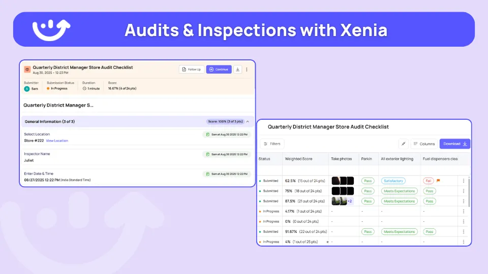 Xenia is built for multi-location frontline operations. The difference from GoAudits is not just feature count. It's the workflow.