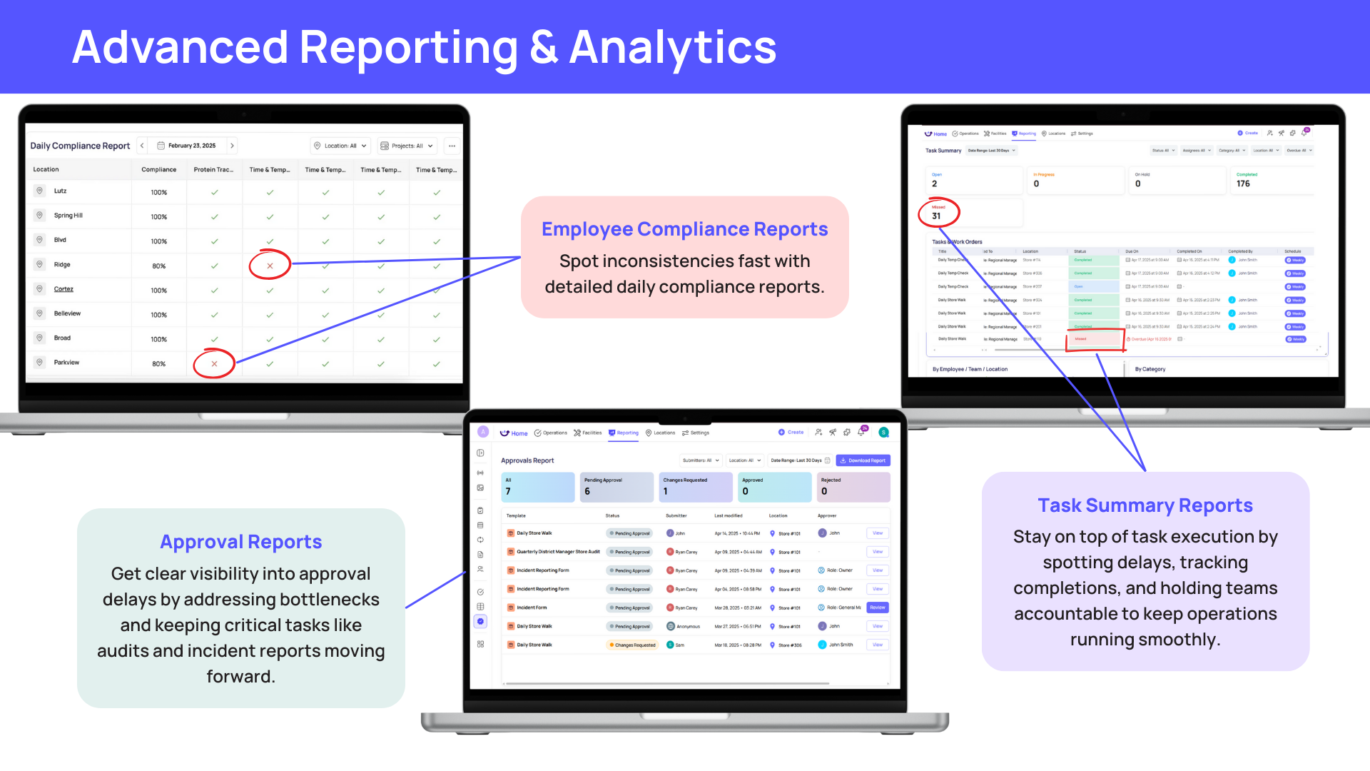 Food safety and compliance, Temperature logs sanitation allergen protocols and health codes, Prevents violations and protects customers and the brand