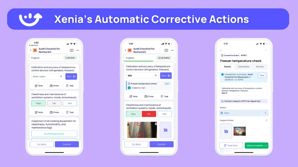 Automatic Task Creation: Failed audits automatically create corrective action tasks. No manual entry.