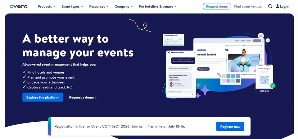 Cvent is a comprehensive, enterprise-grade event management platform that focuses on registration, venue sourcing, and attendee engagement for large-scale events.