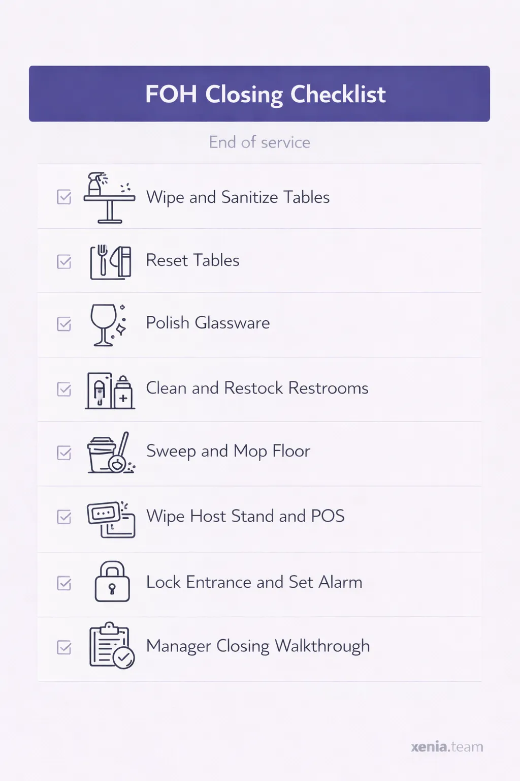 FOH closing checklist