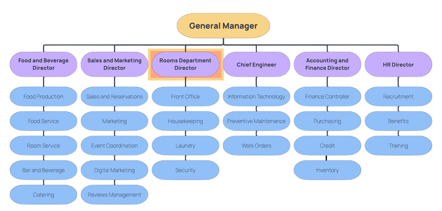 A rooms division manager speaks for these roles in management meetings and is ultimately responsible for the success of these teams.