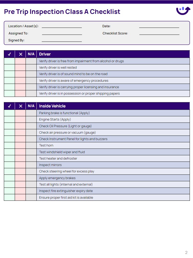 - Long haul trucking companies use pre-trip inspection Class A checklist to ensure that all of their vehicles are safe and compliant before they hit the road.