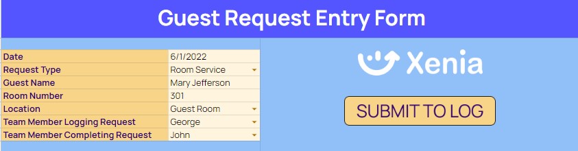 To get started organizing your hotel guest request, try our free guest request log tool. For a more comprehensive, mobile-friendly solution, start your free trial of Xenia today!